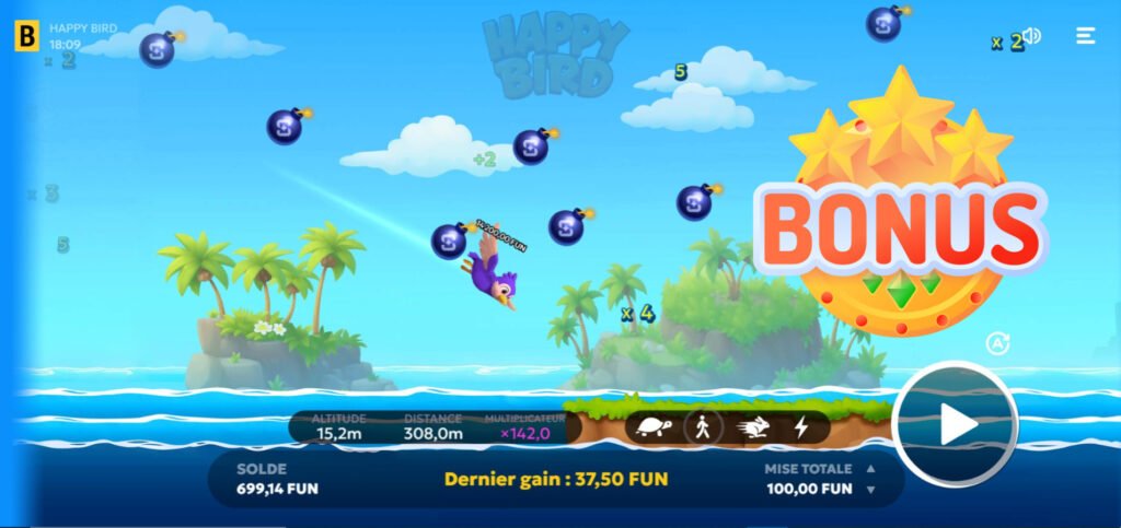 What truly sets Happy Bird apart is its binary outcome. Either your bird safely lands on an island and you collect your winnings, or it falls into the water and you lose your stake—regardless of how high the multiplier climbed. This all-or-nothing mechanic adds an extra layer of adrenaline to every round.